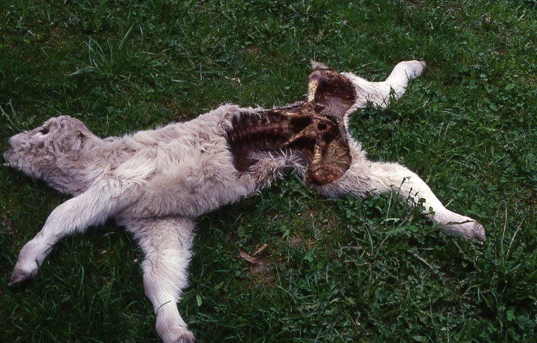 Kalb mit offenem Bauchraum.