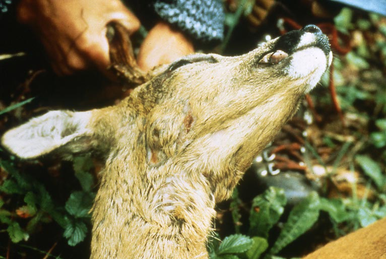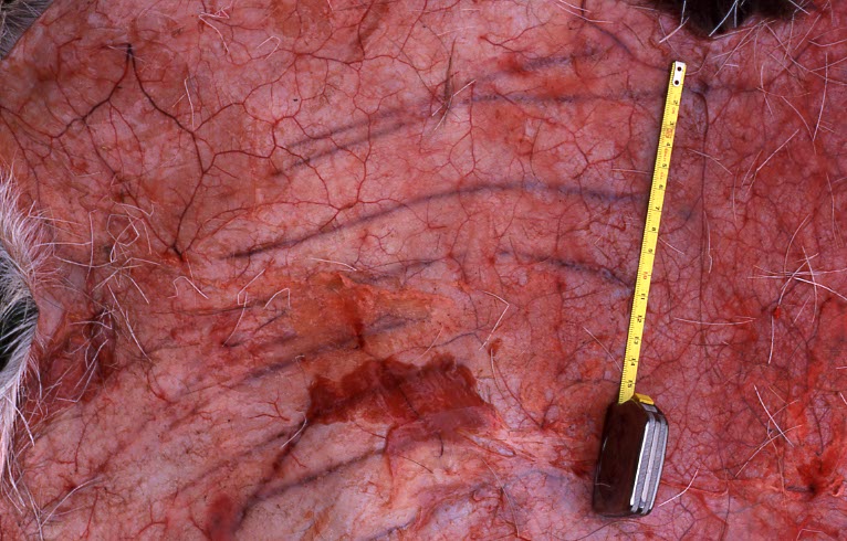 Massive Blutergüsse in der Unterhaut eines Damhirsches.