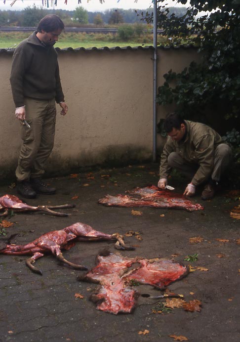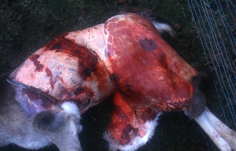 Die abgezogene Haut eines Damhirsches zeigt deutliche Krallenspuren.