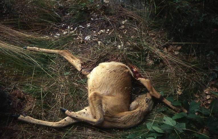 Ein totes Reh ohne Kopf, was von einem Fuchs gerissen wurde.