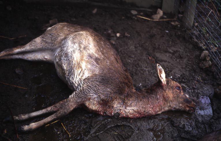 Das Damwild wurde von einem Hund zu Tode gehetzt.